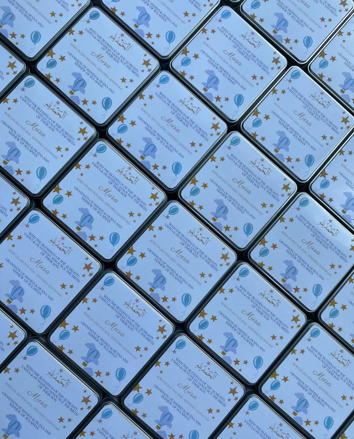 Personalised baby announcement Mithai boxes (hot air balloon)